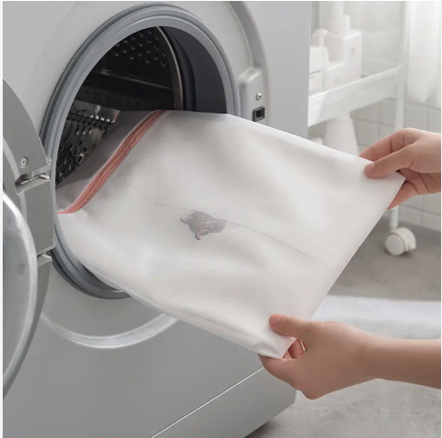Pour protéger votre linge délicat des accrocs dans le tambour, insérer le dans le filet puis refermer à l'aide de la fermeture éclair. Ensuite, placer le filet dans la machine à laver puis choisir le programme linge délicat à 30 degrés. Nous recommandons également d'utiliser une lessive spéciale soie et d'éviter les adoucissants.