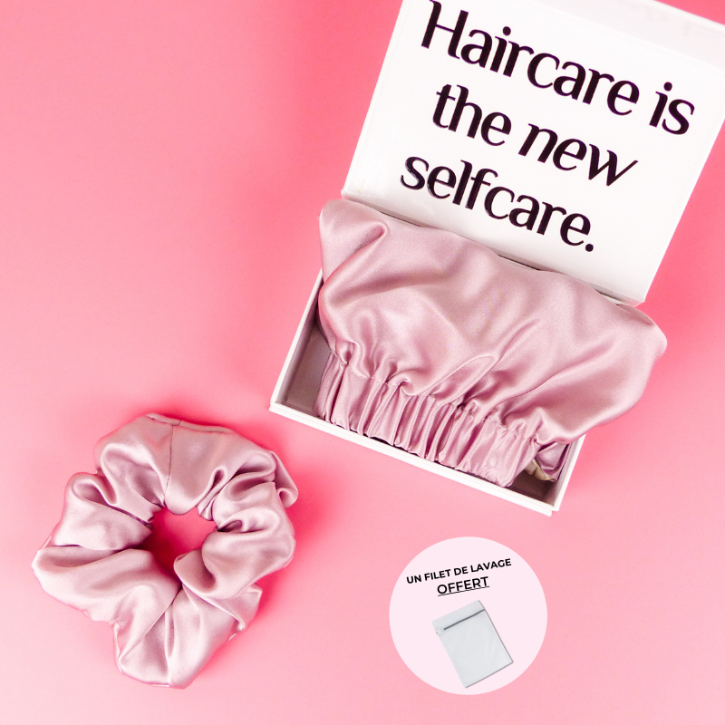 Pour une routine complète, en plus d'une taie d'oreiller en soie ou d'un bonnet, vous pouvez également utiliser des chouchous en soie au quotidien pour attacher vos cheveux sans les abîmer.